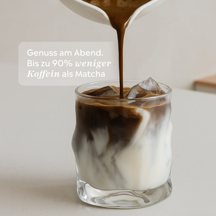 Sehr geringer Koffeingehalt. Bis zu 90% weniger Koffein als Matcha